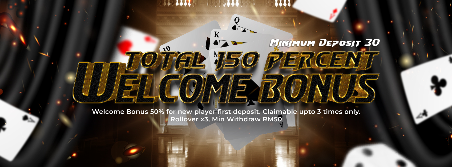 - welcome bonus 50% for new player first deposit can claim 3 times only๐
